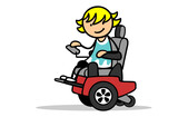 Cartoon Mädchen mit Handicap im elektrischen Rollstuhl