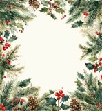 Festive arrangement with pine branches, cones, and red berries for Christmas.
