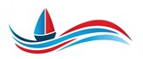 Sailing Boat Icon With Red And Blue Sail On White Background; Nautical Symbol For Travel And Tourism Industry Designs