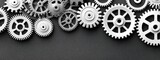 Monochrome Gears Arrangement On Gray Background Mechanical Components For Engineering And Industrial Concepts