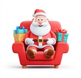 Santa Claus sitting on a red chair with colorful Christmas gifts