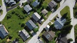 Aerial View of Picturesque Austrian Mountain Village , Showcasing Alpine Architecture and Green Landscapes.
