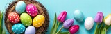 Ostereier als Ostern Panorama Hintergrund
