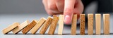 Finger Pushing Wooden Dominoes Causing A Chain Reaction Risk Management And Business Strategy Concept Prevention