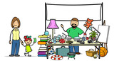Mutter kauft mit Kind Trödel auf Kita Flohmarkt