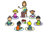 Gruppe Kinder im Kindergarten beim Stuhlkreis oder Morgenkreis