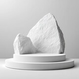 Minimalist White Product Display Podium With Stone Elements On White Background For Cosmetic Or Jewelry Presentation