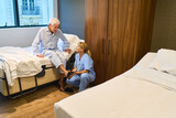 Caregiver assisting senior man in rehabilitation facility