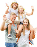 Glückliche Familie und zwei Kinder im Wohnzimmer