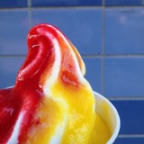 Hoovering scoops of ice cream in ice cream cones (Generative AI)