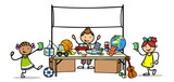 Cartoon Kinder verdienen Geld mit Spielzeug verkaufen auf Flohmarkt