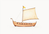 A detailed drawing of an ancient Roman galley with a triangular sail