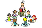 Erzieherin beim Vorlesen mit Gruppe Knder im Morgenkreis
