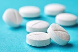 White Round Pills On Blue Background For Healthcare And Pharmaceutical Industries Representing Medication Treatment And Wellness Solutions