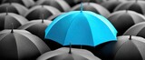 Blue Umbrella Among Gray Umbrellas Standing Out From The Crowd Individuality Leadership Uniqueness And Business Concepts Focus And Determination