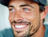 Close-up of a cheerful man smiling with bright teeth and vibrant eyes