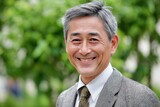 Smiling middle-aged Japanese man in a suit outdoors in a professional portrait