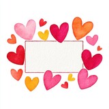 Watercolor Hearts Frame On White Background Pink Red Orange Yellow Hearts Border For Valentine's Day And Romantic Designs