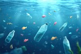 Plastic Bottles Floating Underwater With Fish Illustrating Ocean Pollution And Environmental Damage To Marine