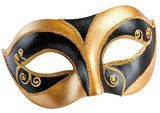 PNG elegant golden and black masquerade mask with intricate details on white background