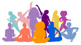 Bunte Collage aus Silhouetten von Frauen bei Sport und Yoga
