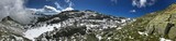 Snowy mountain landscape with rocky terrain captured in a stunning panoramic view