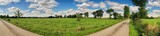 Wide panorama of a scenic countryside landscape featuring fields and trees