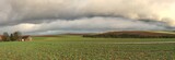 Rural farmland with cloudy sky in a wide panoramic landscape