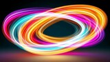 • Colorful neon light ring glowing in a dark 3D abstract space
