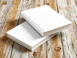 Two White Hardcover Books Mockups on Rustic Wooden Table Surface for Branding Education or Presentation Purposes and Design Projects