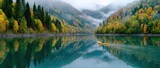 Scenic autumn lake with colorful trees reflecting in calm waters