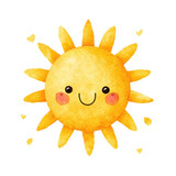 Adorable smiling sun illustration with cheerful orange sunny rays