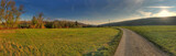 Panoramic rural landscape with a dirt road and scenic open countryside