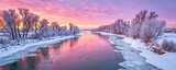 Beautiful winter sunset over a serene icy river landscape