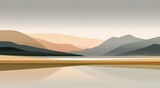 Minimalist artwork of a serene lake with distant mountain reflections