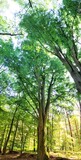 • Scenic forest panorama featuring tall trees and sunlight streaming through the foliage