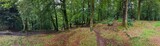 • Panoramic view of a serene forest landscape with trees and a leafy ground