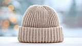 Cozy oatmeal knit beanie mockup for winter clothing design templates