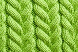 Close up of a detailed and vibrant green knitted braided pattern texture
