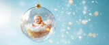 Elegant Christmas ornament featuring baby Jesus in a transparent glass sphere
