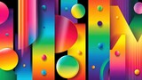 Vibrant abstract composition with neon gradients and three-dimensional shapes in rainbow colors