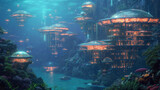 Sunken buildings of Atlantis hidden underwater in ocean (Generative AI)