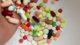 Hand grabbing many pills
