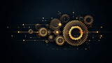 Abstract background with interconnected gears and polygonal shapes in a light, technological theme