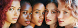 Close-up of three diverse women smiling with natural beauty, showcasing perfect skincare and anti-aging results