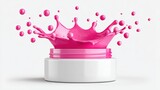 Cosmetic Cream Jar With Pink Splash On White Background Beauty Product Skin Care Isolated Studio Shot For Advertising And Marketing