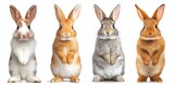 Set of four adorable rabbits standing upright in a bright setting