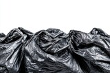 Black plastic bags gathered together on a white background close-up shot
