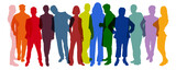 Bunte Silhouetten vieler Erwachsener in verschiedenen Posen