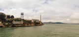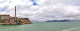 Panoramic view of historic buildings with Golden Gate Bridge in the distance